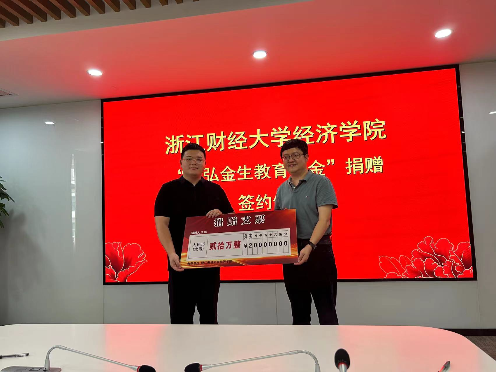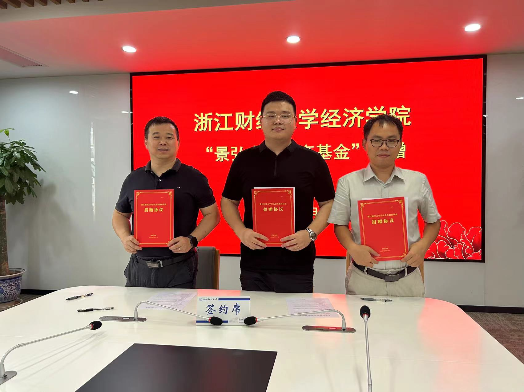 “景弘金生教育基金”捐赠仪式在学校行政楼200会议室举行。学院2010级优秀校友王炀,校友办主任吴玻,学院院长罗俊、党委书记徐奇伟、党委副书记徐丽玲等出席签约仪式。