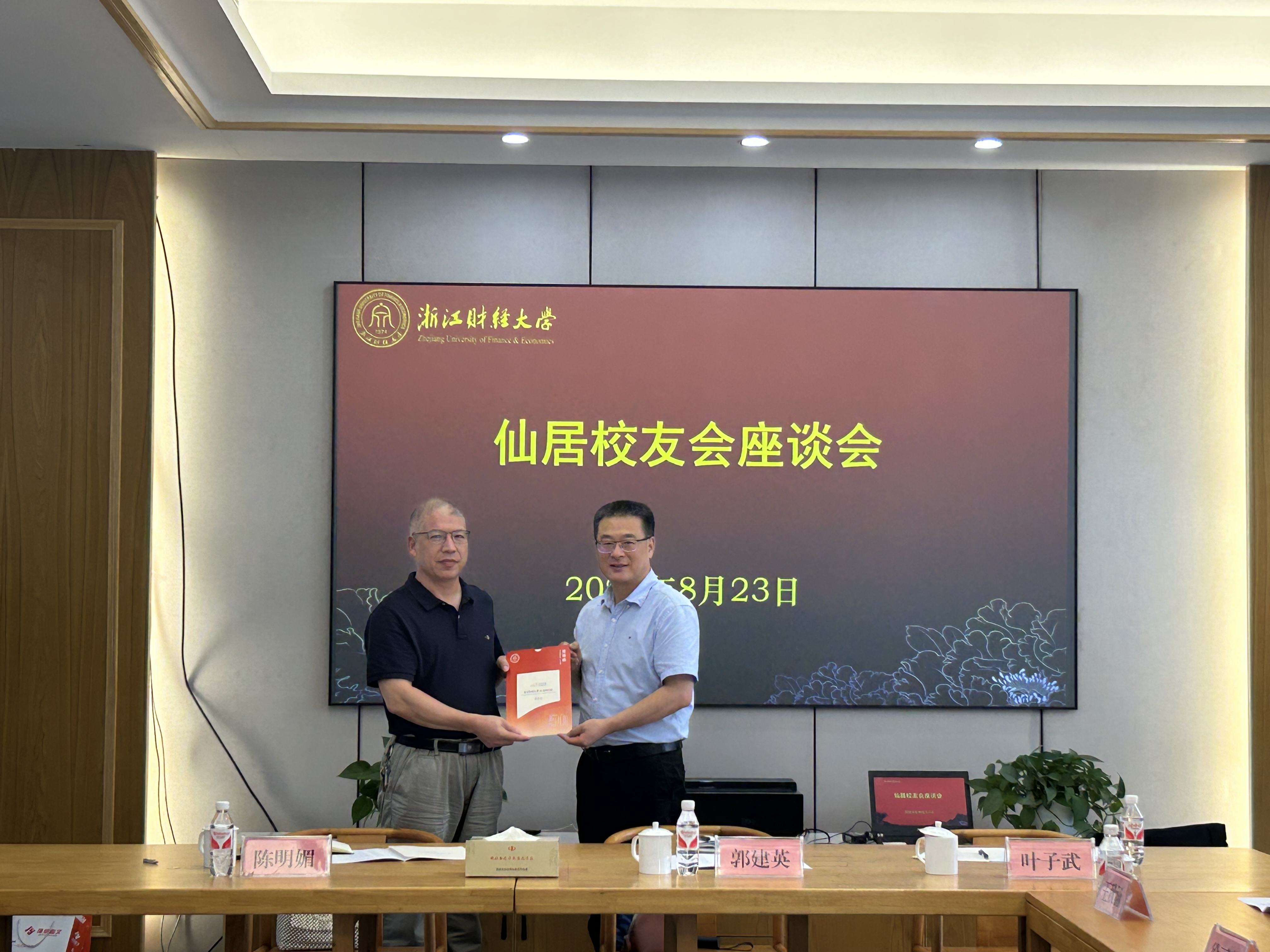 徐晓东代表学校致辞,他向仙居校友们介绍了学校近年来在内涵建设及服务国家战略等方面所取得的成绩。他表示,仙居校友的行业汇集度高、凝聚力强,是学校发展的重要力量,学校正在持续推进具有全国影响力的高水平财经类大学建设,希望通过加强与行业、校友的交流,为行业发展培养优质人才、提供技术创新和知识服务。同时还介绍了学校50周年校庆工作筹备情况,并表示,母校欢迎校友们届时能拨冗回家。