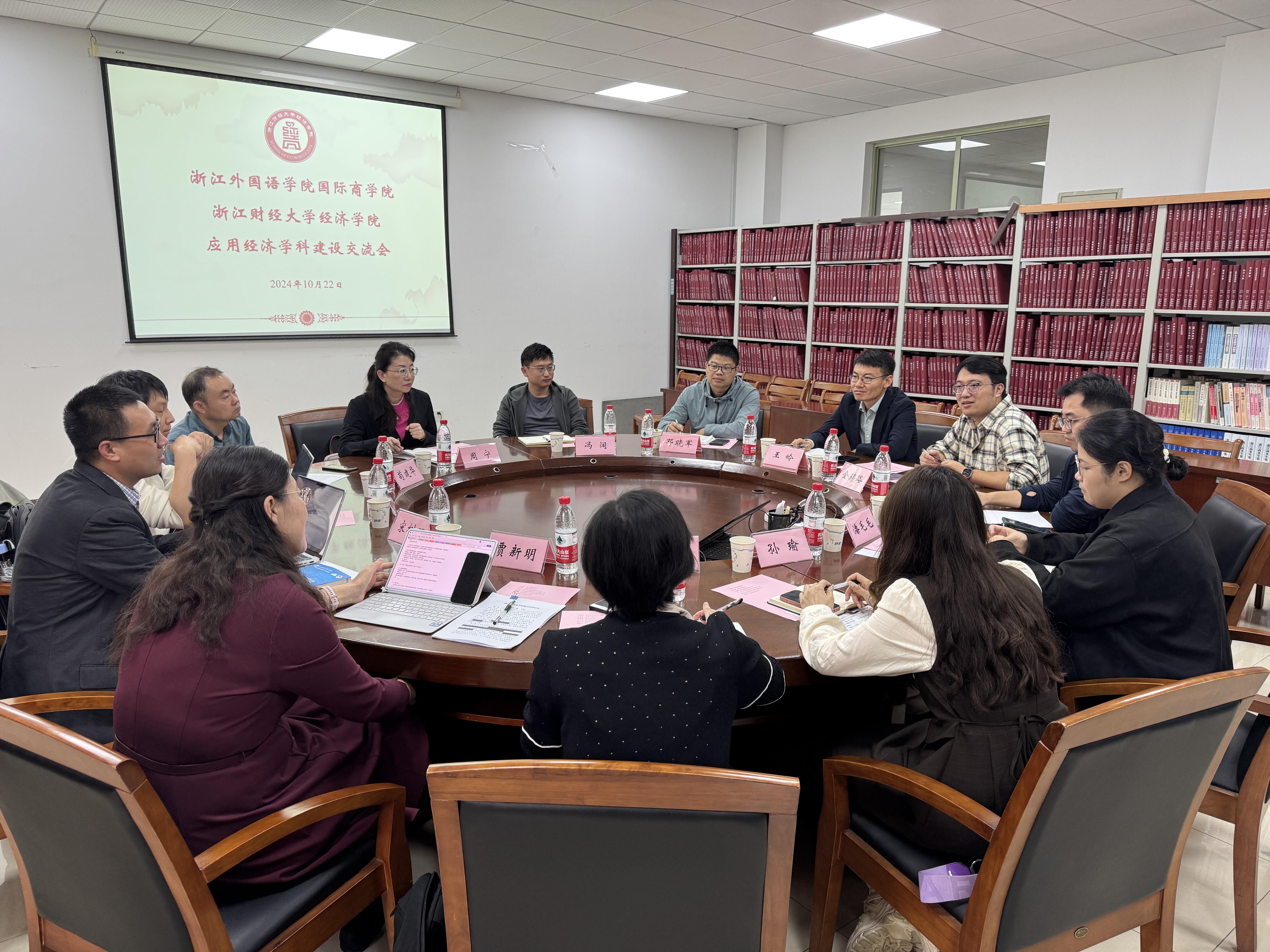 会上,学院王岭副院长对浙江外国语学院商学院一行表示热烈欢迎,并从学科特色、师资队伍、科研平台、科研成果、人才培养等多个方面,对我校应用经济学学科建设情况进行了详细介绍。
