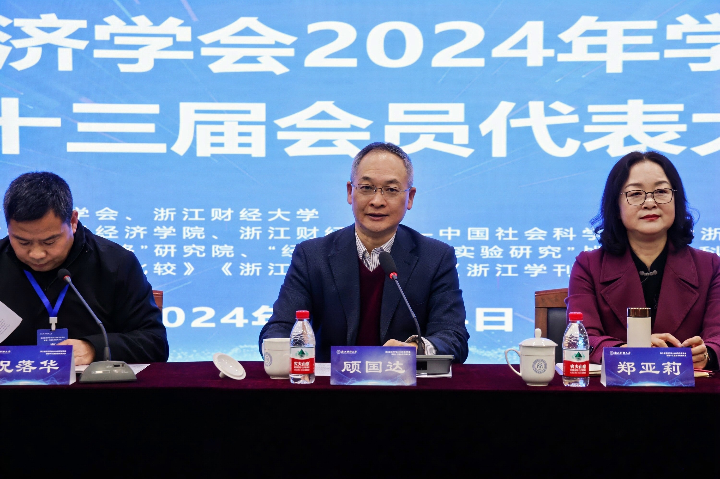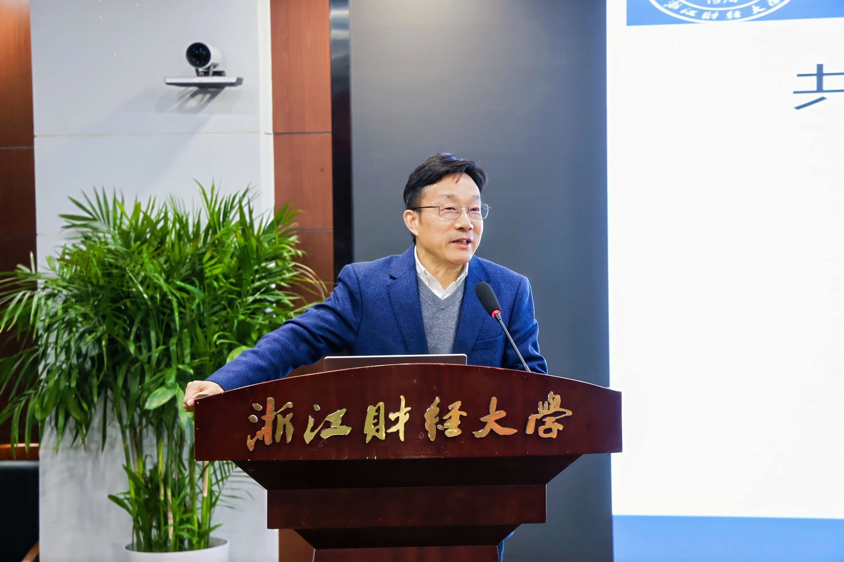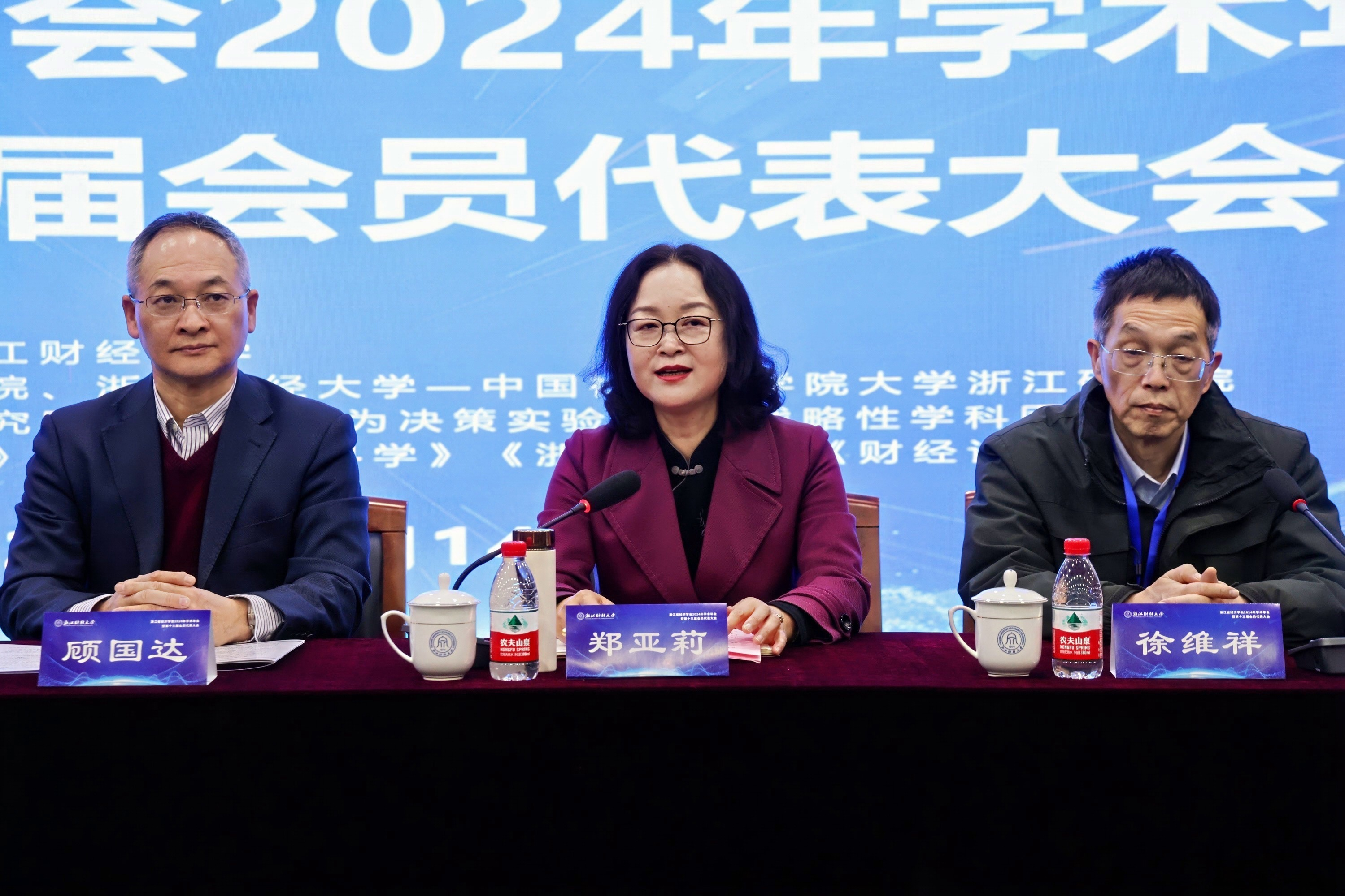 副校长郑亚莉、浙江省社科联社科团体处副处⻓况落华、浙江省经济学会会长顾国达分别致辞,开幕式由啪啪啦