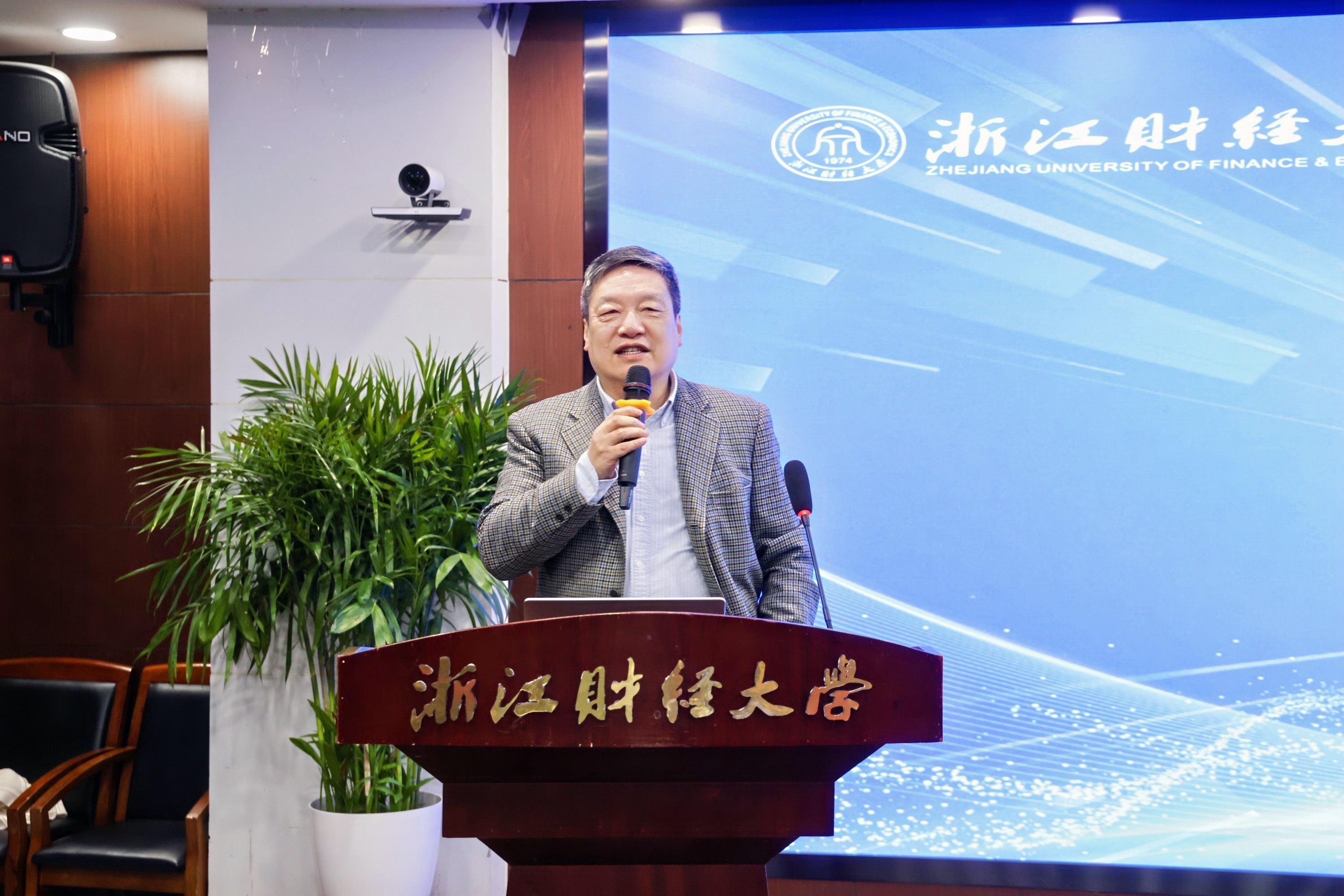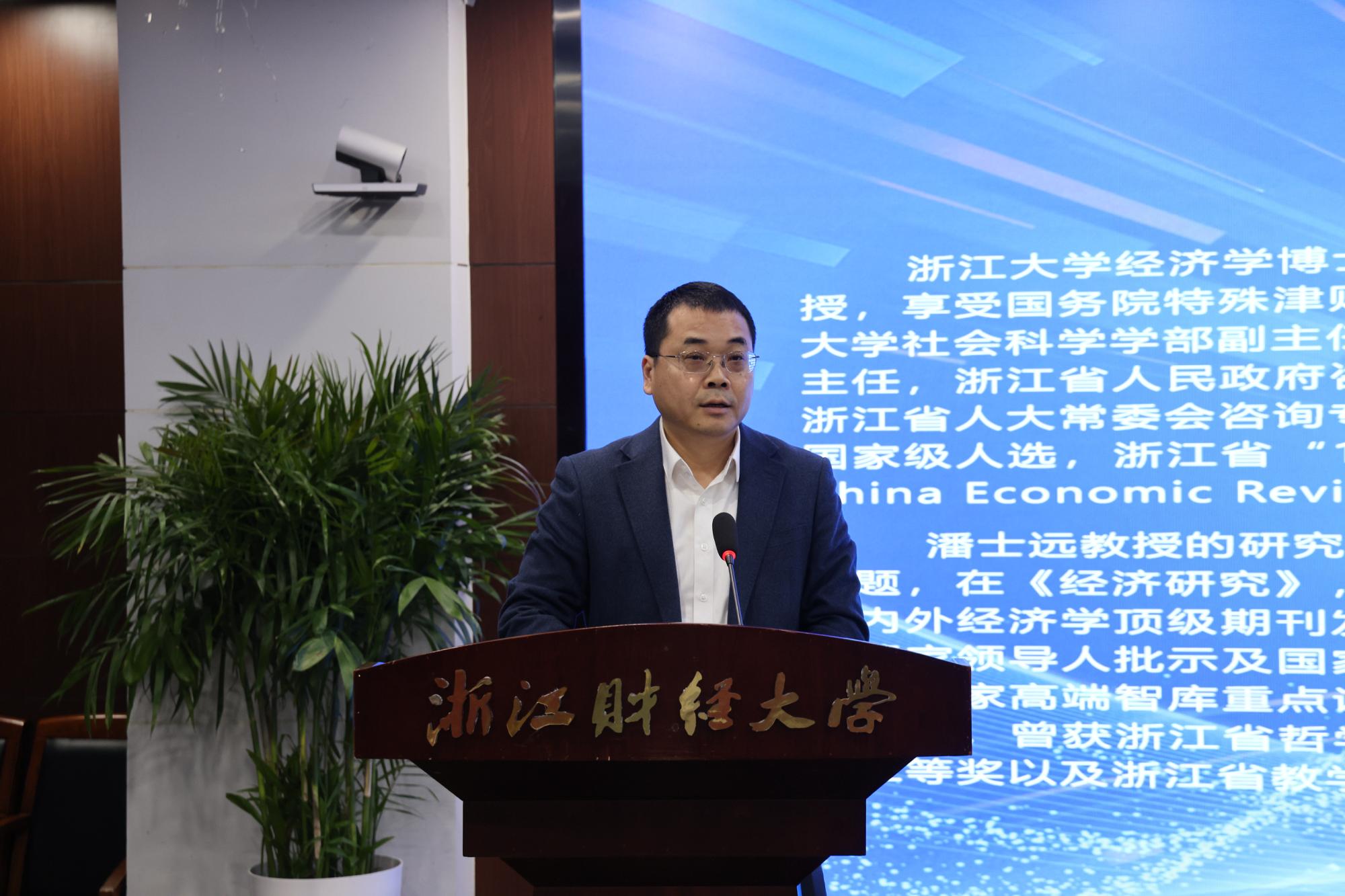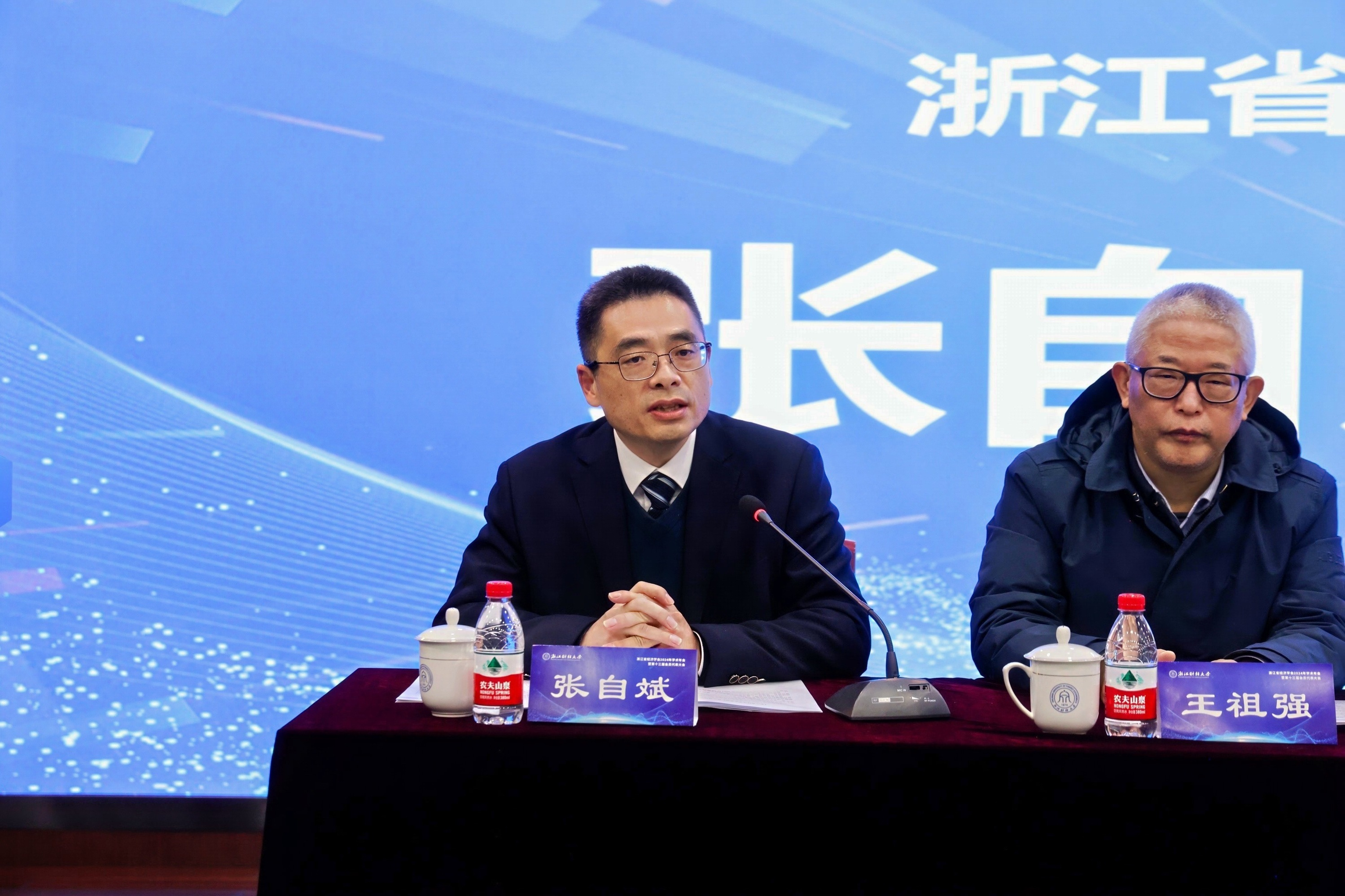 副校长郑亚莉、浙江省社科联社科团体处副处⻓况落华、浙江省经济学会会长顾国达分别致辞,开幕式由啪啪啦