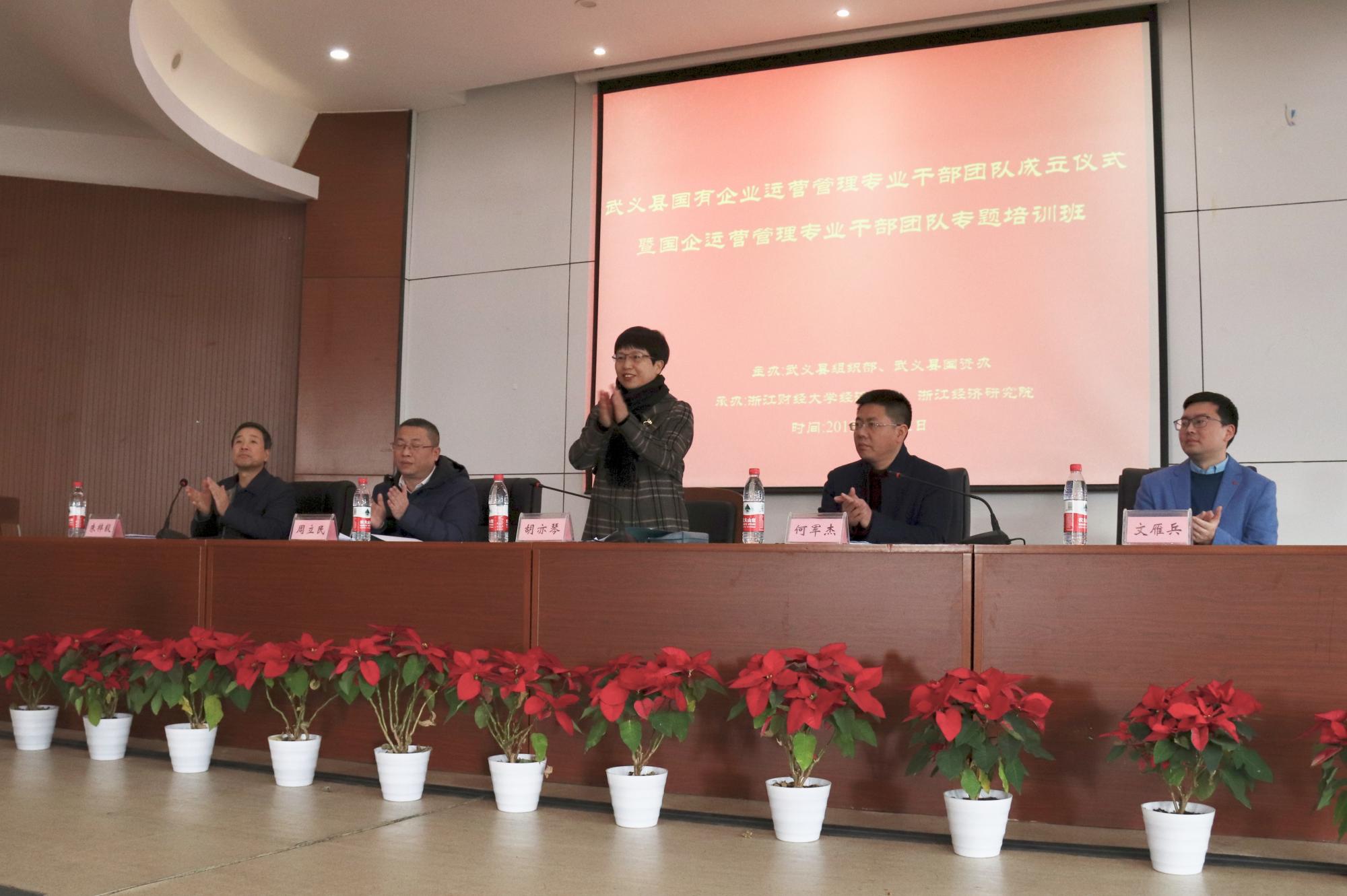 培训班开班仪式于12月2日在学院楼219报告厅举行,学院院长胡亦琴教授出席仪式并致辞,武义县组织部和武义县国资办领导、啪啪啦
