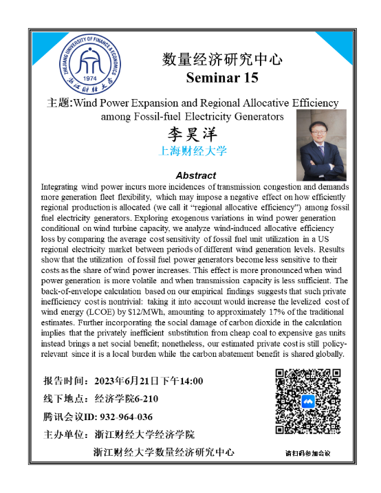主题: Wind Power Expansion and Regional Allocative Efficiency among Fossil-fuel Electricity Generators