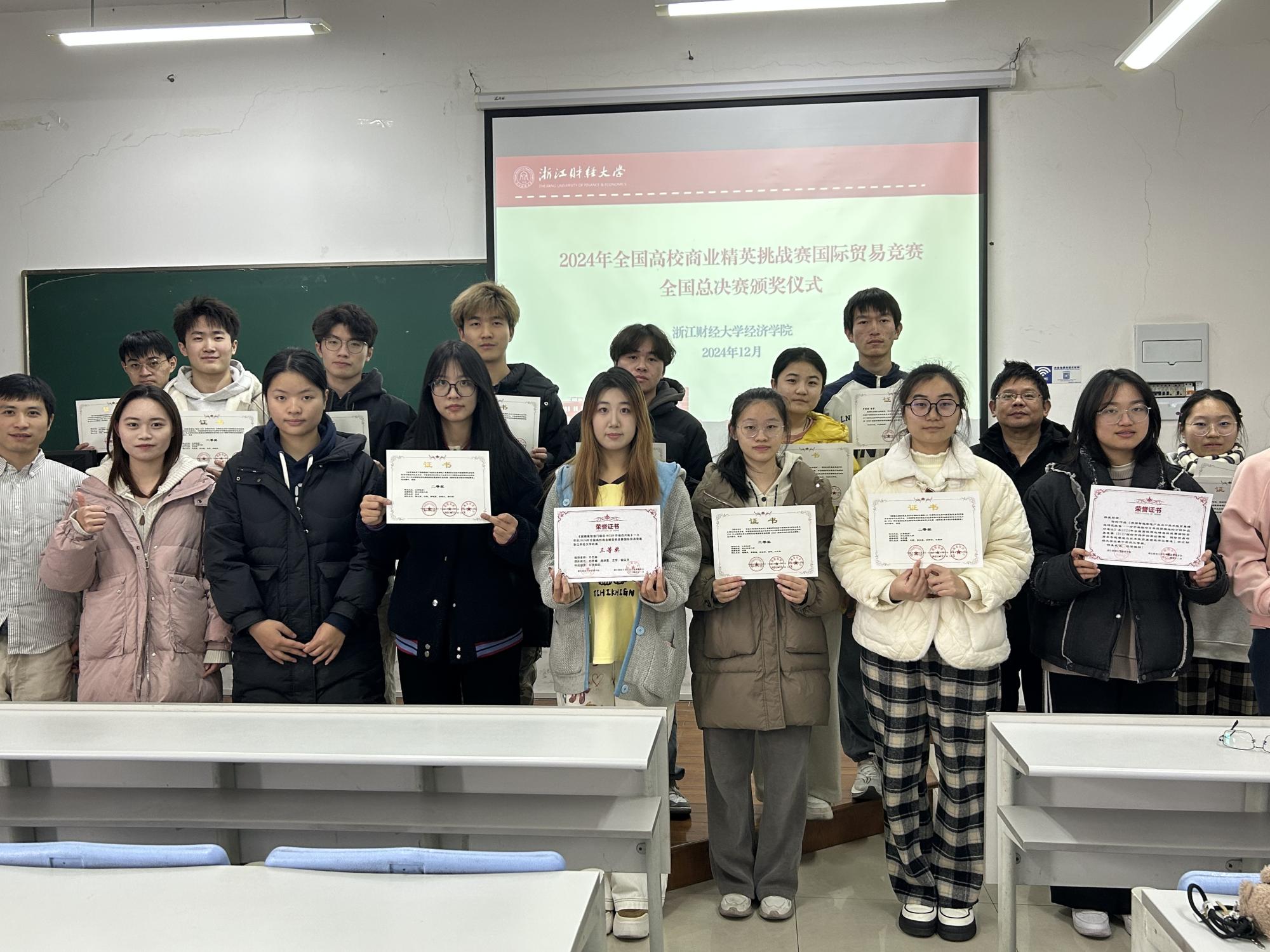 经过校赛选拔,共有9支队伍参与2024年全国高校商业精英挑战赛国际贸易竞赛全国总决赛角逐。11月25日,全国高校商业精英挑战赛组委会公布竞赛成绩,我校学生取得佳绩,所有参赛队伍都获得三等奖以上奖项。其中,两支队伍荣获总决赛一等奖,六支队伍获总决赛二等奖,一支队伍获总决赛三等奖。向以上参赛队伍和队员表示祝贺。同时,我校也荣获最佳院校组织奖。