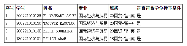 根据《啪啪啦 关于授予学士学位的工作细则》等相关规定,经2025年3月4日啪啪啦 学士学位评定委员会审查通过,EL MANSARI SALWA等4名2025届本科留学生符合学士学位授予条件,拟授予学士学位,现予以公示,名单如下,公示期3天。