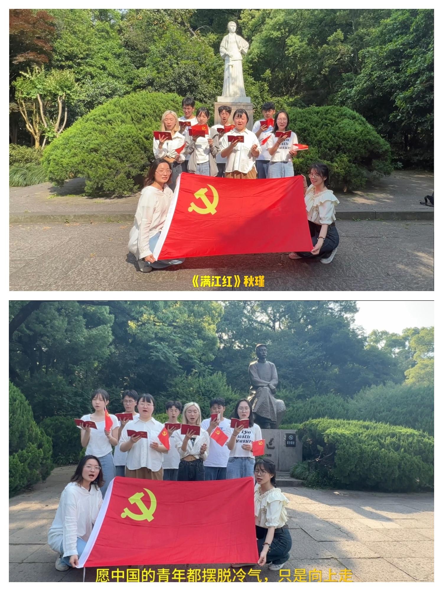 在五四青年节当天,学生党支部成员至秋瑾墓前,满怀深情地朗诵了《满江红》,表达了对秋瑾烈士的怀念。在鲁迅铜像下,支部成员朗诵了鲁迅先生的名言名句,“愿中国的青年都摆脱冷气,只是向上走……”,声声激昂,句句铿锵,展现新时代青年奋发进取的精神风貌。