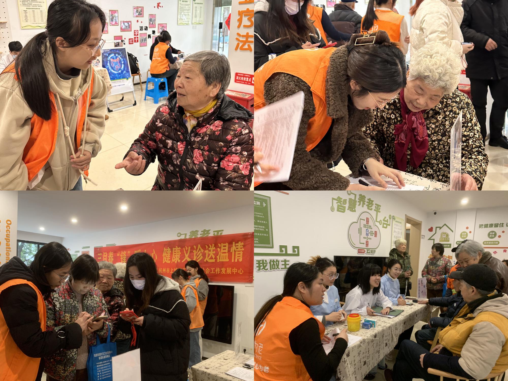 三月春风暖,奉献正当时。为扎实推进习近平新时代中国特色社会主义思想主题教育落到实处,弘扬新时代雷锋精神,营造孝老敬亲、睦邻和谐的优良社会氛围,学院本科生第二党支部在学雷锋纪念日当天,与景秀社区新时代文明实践站、杭州市上城区汇泉为老社会工作发展中心一起开展“三月春‘锋’暖人心,健康义诊送温情”学雷锋主题义诊活动。