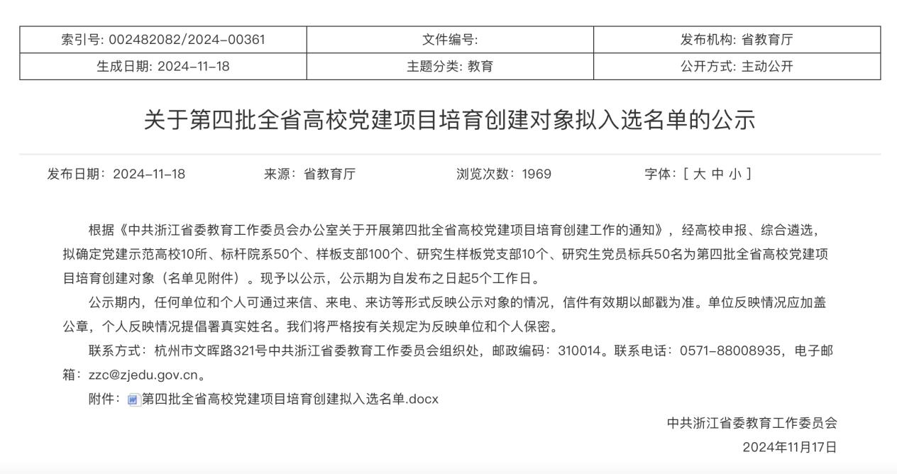 近日,中共浙江省委教育工作委员会公布了第四批全省高校党建项目培育创建对象入选名单。啪啪啦