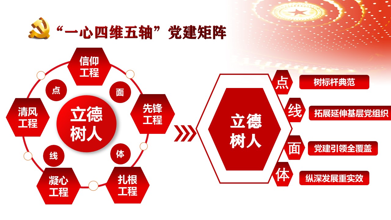 党委始终坚持以习近平新时代中国特色社会主义思想为指导,落实立德树人根本任务,打造交叉立体式“一心四维五轴”的学院党建矩阵。学院党委注重发挥党支部在人才培养、学科建设、教育教学、科学研究等方面的战斗堡垒作用和党员的先锋模范作用,1个教师党支部入选第三批“全国党建工作样板支部”培育创建单位和第二批全省高校党建工作“样板支部”培育创建单位、1个教师党支部入选第二批全省高校“双带头人”教师党支部书记工作室建设单位、2个教师党支部入选全省“双带头人”教师党支部书记“强国行”专项行动团队。