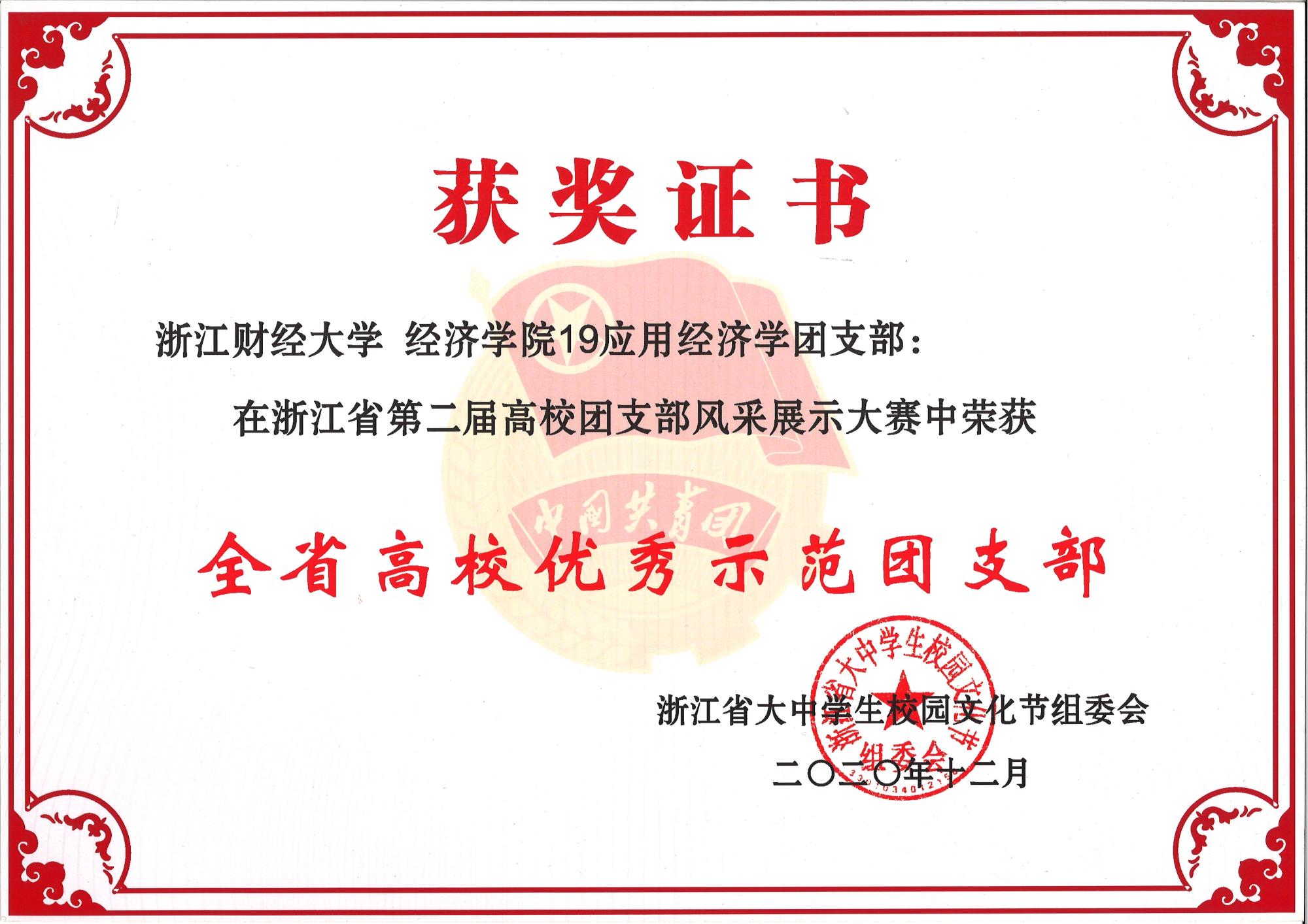 19应用经济学团支部荣获全省高校优秀示范团支部。