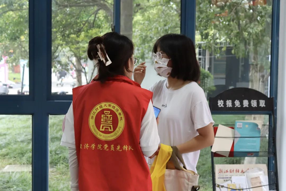 8月28日早8点,辅导员老师和班导们早早守候在成蹊苑东门,伴着朝晖翘首期盼新生的到来。工作人员在综合服务平台耐心地向新生答疑解惑,协助新生快速、有序完成报到。一句亲切地问候,热情洋溢的笑容,乐此不疲的帮助,都成为新生们踏入经院的第一道记忆。