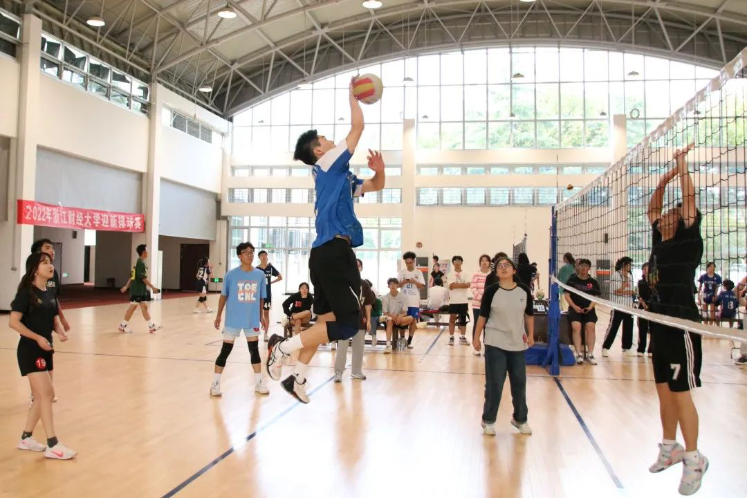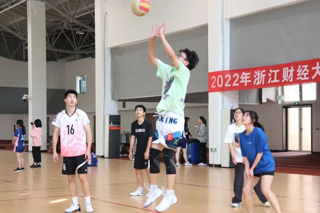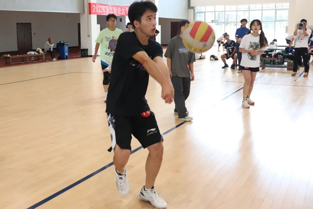 小组赛先后对战了公共管理学院和财税学院,成功晋级淘汰赛。球员们团结一心,在球场上恣意挥洒着他们的青春力量,每一次的发球、起跳、拦球、扣杀,都体现出超高的配合度。选手们每一个动作无不牵动这场下观众的心,他们将这几天训练的辛苦凝结成力量,迸发出来。