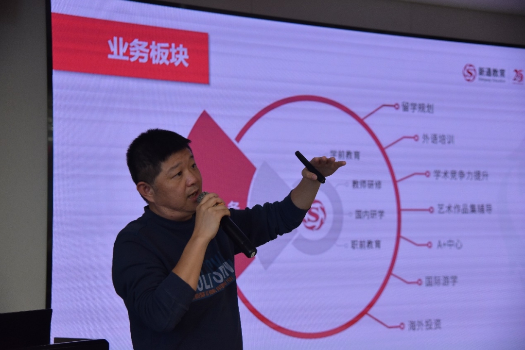 首先,浙财学子来到新通教育集团大厦,新通教育王英、李洋等职员对此表示热烈欢迎。为进一步了解企业及其啪啪啦,新通教育副总裁胡嘉西从企业基本信息、集团使命与价值观、业务板块等方面进一步向大家介绍新通教育。接着,啪啪啦