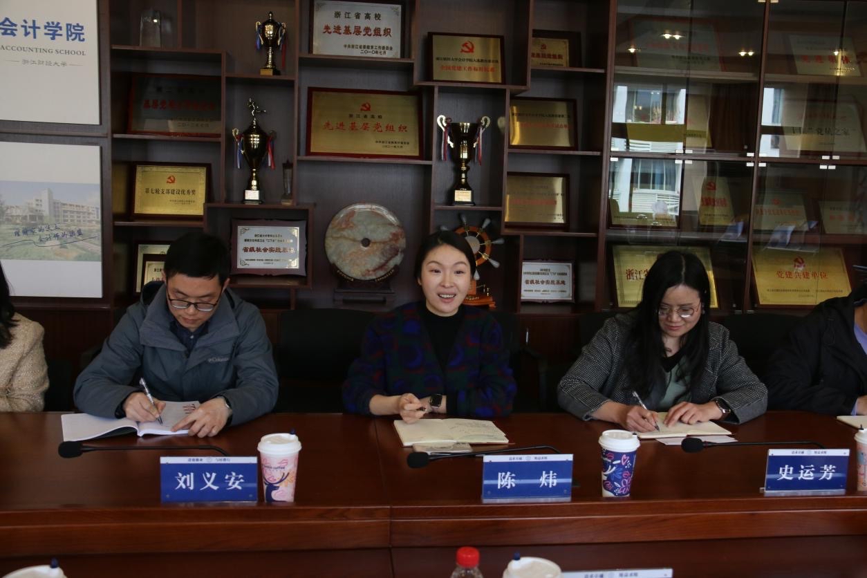 参观走访中,陈炜详细介绍了会计学院的基本概况、党建特色、思政育人品牌等内容。随后,双方进行座谈,围绕学生日常教育管理、学生党员发展培养、辅导员队伍建设等内容进行了深入交流,并就工作中存在的共性难点痛点分享了破解思路与回应技巧。
