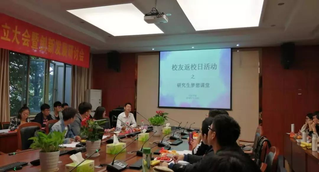 上午10点,梦想课堂的研究生部分在学院楼210会议室举行。校友潘锡泉学长、袁璐学姐作为特邀嘉宾出席了本次活动。