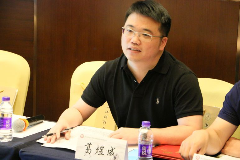 绍兴校友分会会长葛煜成发言,他表达了对母校和学院发展的祝贺,对校园生活的眷恋感恩和团结力量办好啪啪啦