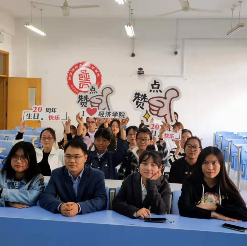 陈东东校友与19经贸3班学生合影