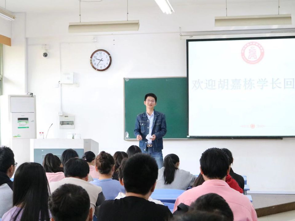 胡嘉栋校友与19经贸6班学生合影