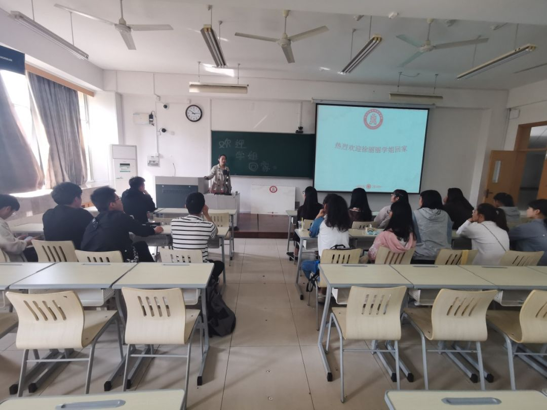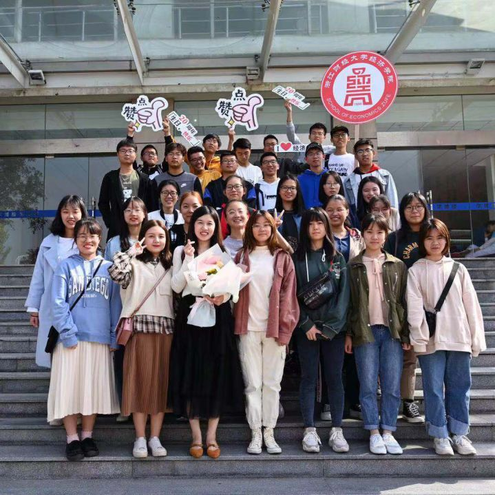 徐丽丽校友与19经贸8班学生合影