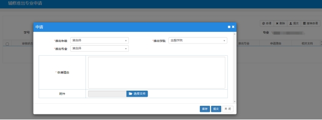 3. 主修准出专业申报条件:主修准出其他专业须满足修读完成课程学分比例达到准出专业的50%,若未达到准出专业的50%,通过课程替代可达50%者,需提交申请理由和替代说明附件,再提交申请。