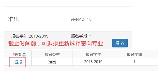 注意:上学期已申请的学生须重新申报该准出意向专业,有更改“准出意向”需求的,可申报其他专业。