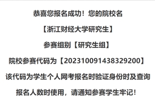 的本科组、研究生组院校参赛代码见下图,该代码为学生个人网考报名时验证身份及查询报名人数时使用,请参赛学生牢记。